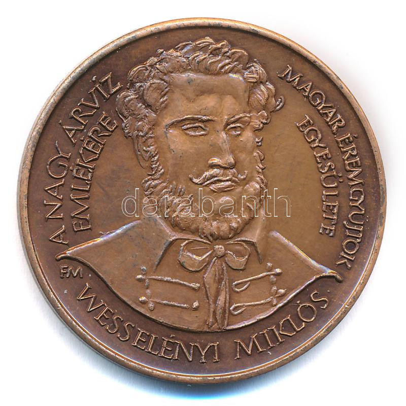 Fritz Mihály (1947-) 1988. "Wesselényi Miklós - A nagy árvíz emlékére / Pesti árvíz 1838" kétoldalas bronz emlékérem (42,5mm) T:1-