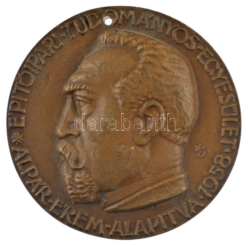 Konyorcsik János (1926-2010) DN "Alpár Érem - Építőipari Tudományos Egyesület - Alapítva 1958" kétoldalas bronz emlékérem, hátoldalán "Dr. Trautmann Rezső I. díj" gravírozással (88mm) T:2 felül furattal