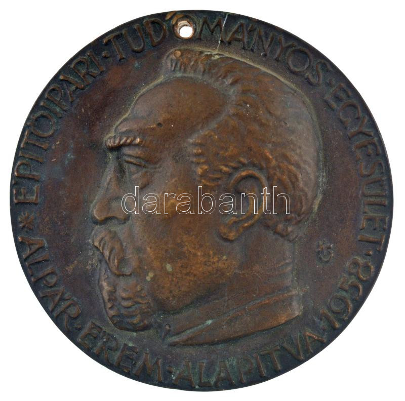 Konyorcsik János (1926-2010) DN "Alpár Érem - Építőipari Tudományos Egyesület - Alapítva 1958" kétoldalas bronz emlékérem, hátoldalán "Dr. Kunszt György II. díj" gravírozással (85mm) T:2 felül furattal