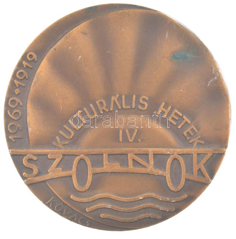 Kovács Dezső (1921-2004) 1969. "IV. Kulturális Hetek Szolnok"... https://www.darabanth.com/de/435-Fernauktion/435.0/Numismatik/Ungarische-Gedenkmunzen-Plaketten~1000009/Kovacs-Dezso-1921-2004-1969-IV-Kulturalis-Hetek-Szolnok-egyoldalas-bronz-emlekerem-70mm~II2821133