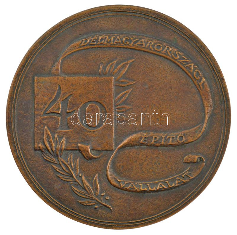 Lapis András (1942-) 1989. "Délmagyarországi Építő Vállalat - 40 / 1949 - 1989" kétoldalas, öntött bronz plakett (93mm) T:1- patina