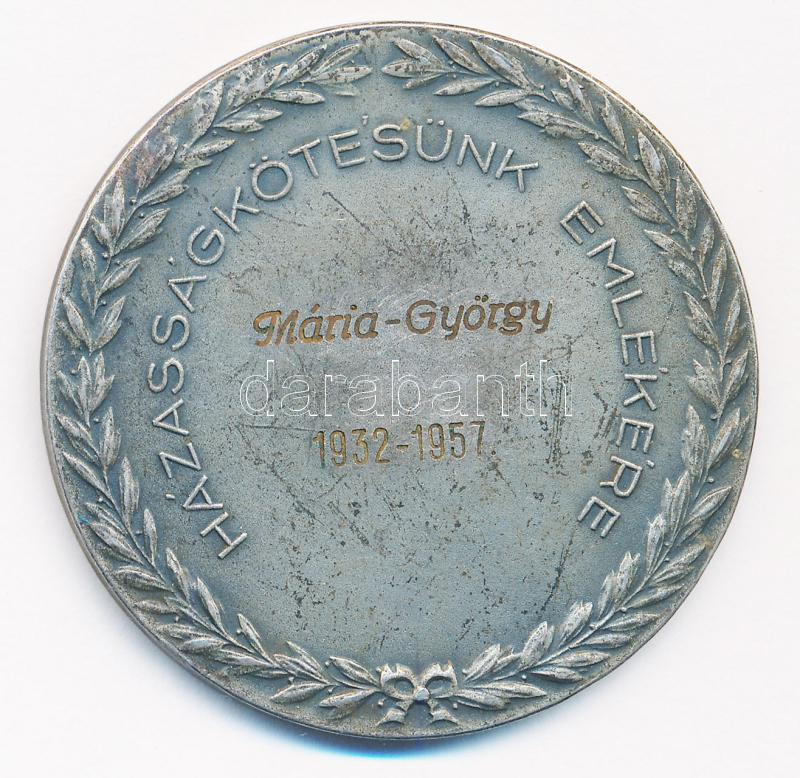 Lőrincz István (1901-1985) 1957. "Házasságkötésünk emlékére" kétoldalas ezüstözött bronz emlékérem "Mária-György 1932-1957" gravírozással T:2 patina