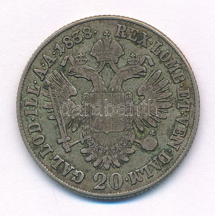 Hungary 1838B 20 K... https://www.darabanth.com/de/435-Fernauktion/435.0/Numismatik/Ungarische-Munzen-und-Munzen-mit-ungarischem-Munzzeichen~1000008/1838B-20kr-Ag-V-Ferdinand-T3-patina--Hungary-1838B-20-Kreuzer-Ag-Ferdinand-V-CF-patina-Husz~II2819828