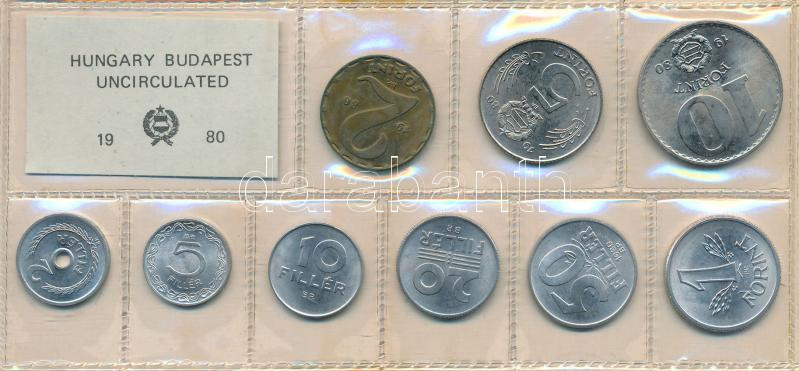 Beschreibung: 1980. 2f-10Ft (9xklf) érmés forgalmi sor fóliatokban T:1 patina