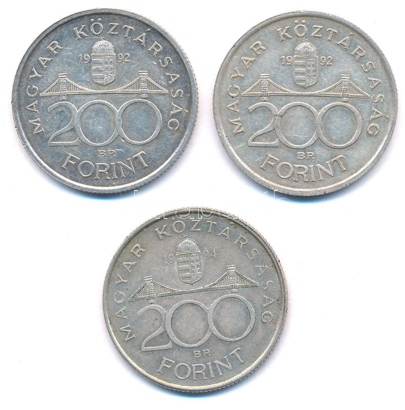 Beschreibung: 1992. 200Ft Ag "MNB" (2x) + 1994. 200Ft "Deák" T:2 Adamo F13, F13.1
