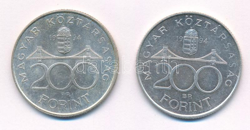 Beschreibung: 1994. 200Ft Ag "Deák" (2db) T:1-,2 patina
