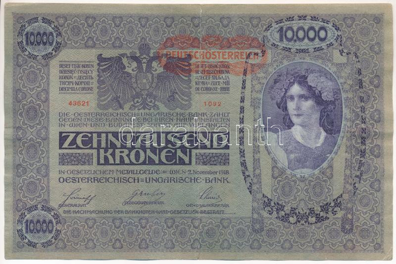 Ausztria 1918. 10.000K vízszintes "DEUTSCHÖSTERREICH" felülb... https://www.darabanth.com/de/435-Fernauktion/435.0/Numismatik/Weltweit-Banknoten~1500030/Ausztria-1918-10000K-vizszintes-DEUTSCHOSTERREICH-felulbelyegzessel-TIII-tear-Austria-1918~II2820537