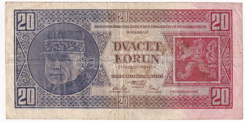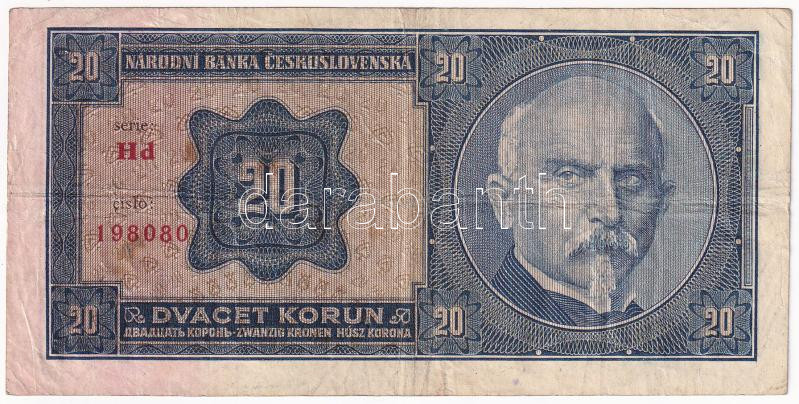 Czechoslovakia 19... https://www.darabanth.com/de/435-Fernauktion/435.0/Numismatik/Weltweit-Banknoten~1500030/Csehszlovakia-1926-20K-Hd-198080-TIII-Czechoslovakia-1926-20-Korun-Hd-198080-CF-Krause-P23~II2778315