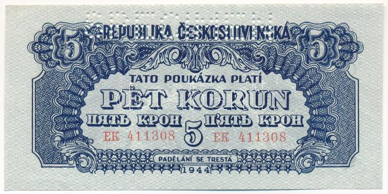 Beschreibung: Csehszlovákia 1944. 5K "EK 411308", "SPECIMEN (MINTA)" perforációval T:I,I-