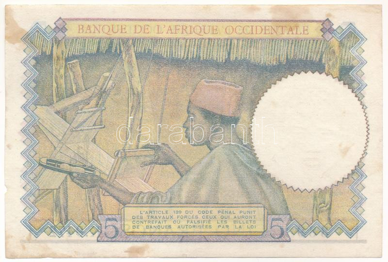 France 1942. 5 Francs "889 K.9472" C:XF,VF spotted, small missing material
