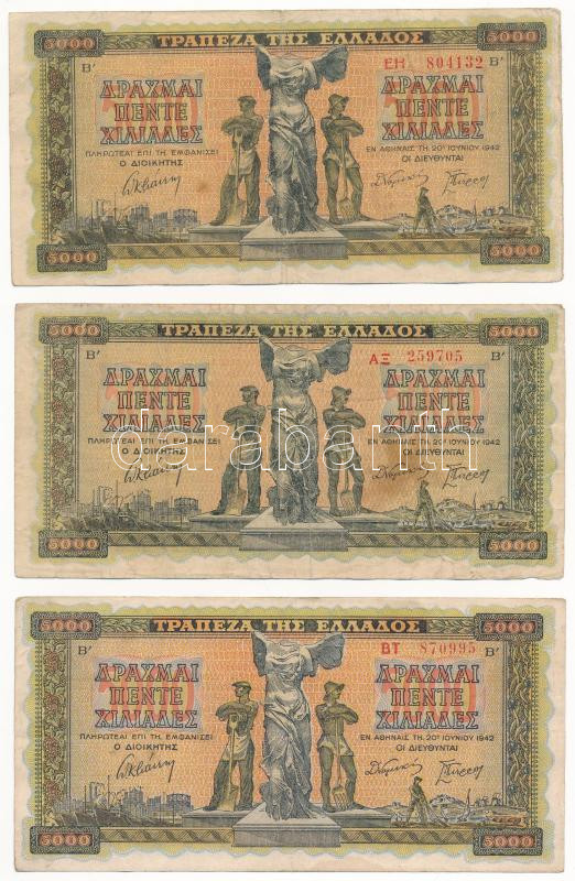 Greece 1942. 5000 Drachmai (5x) C:F