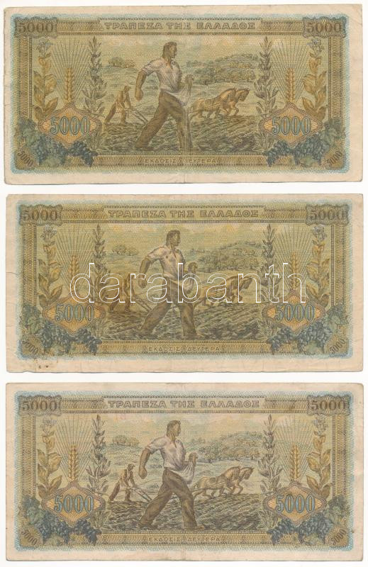 Greece 1942. 5000 Drachmai (5x) C:... https://www.darabanth.com/de/435-Fernauktion/435.0/Numismatik/Weltweit-Banknoten~1500030/Gorogorszag-1942-5000D-5x-TIII-Greece-1942-5000-Drachmai-5x-CF--Krause-119a~II2820821