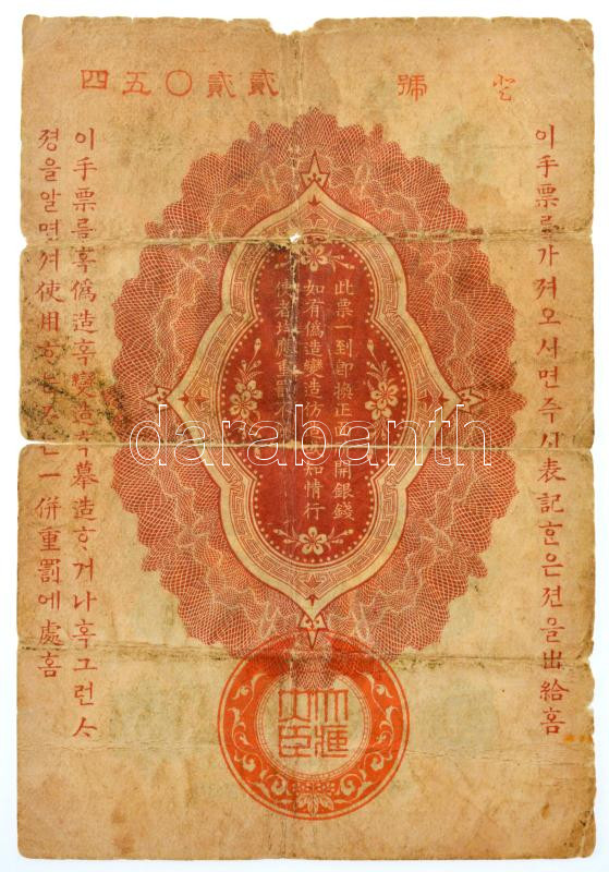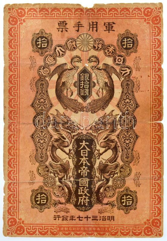 Japán 1904. 10s sorszámos, ritka kiadás! T:III- folt, kis anyaghiány, szakadás