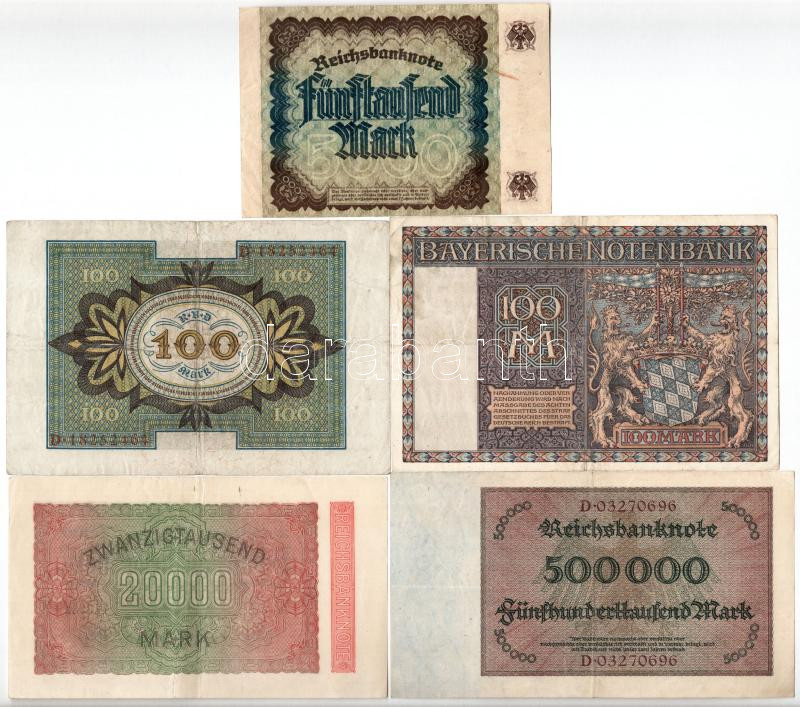 German Empire 1910-... https://www.darabanth.com/de/435-Fernauktion/435.0/Numismatik/Weltweit-Banknoten~1500030/Nemet-Birodalom-1910-1923-100M-500000M-TII-III-German-Empire-1910-1923-100-Mark-500000-Mark~II2769739