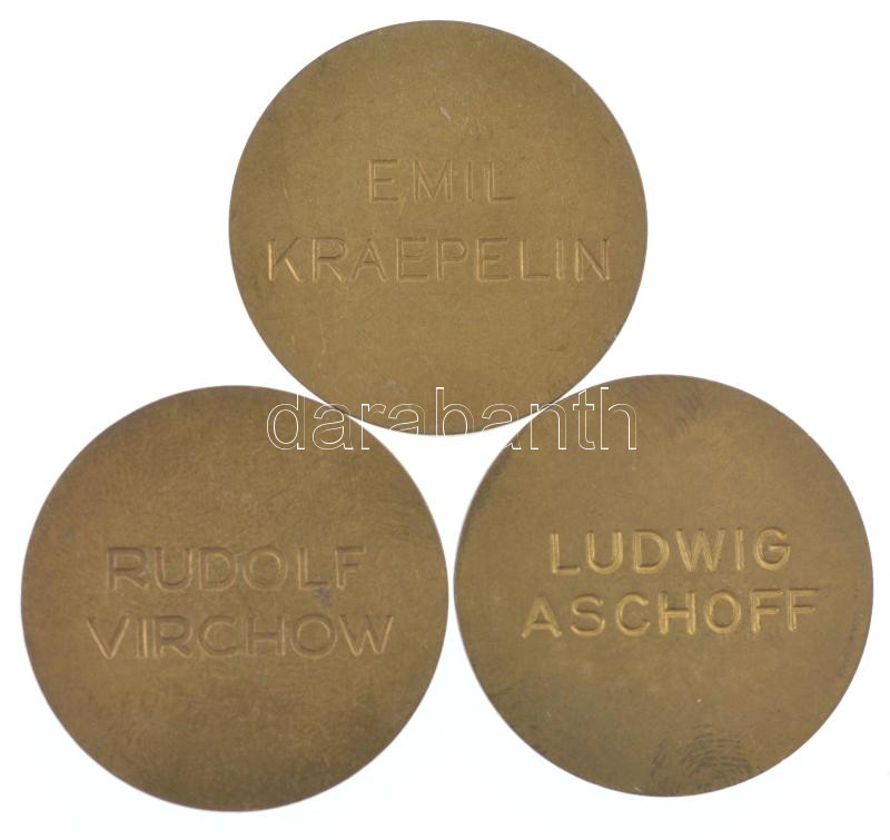 DN "Híres orvosok arcképei" kétoldalas bronz emlékérem, 8xklf/11x) (30mm) T:1-,2 ND. "Portraits of famous doctors" two-sided bronze commemorative medallion (8xdiff/11x) "Friedrich Von Müller, Rudolf Virchow, Julius von Wagner-Jauregg, Ludwig Aschoff, Gustav von Bergmann, Ferdinand Sauerbruch, Sigmund Freud, Emil Kraepelin" (30mm) C:AU,XF