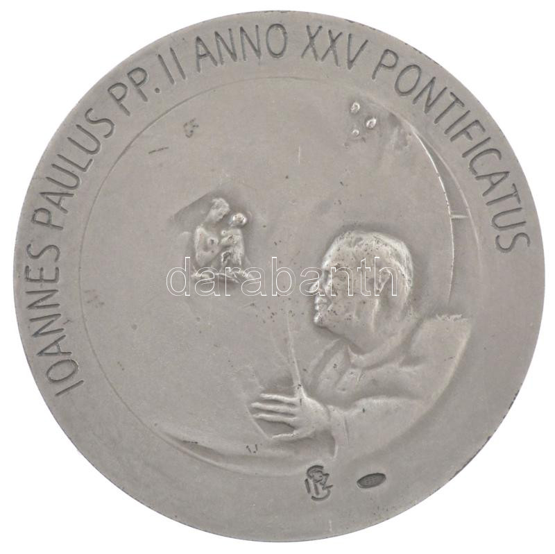 Vatikán 2003. "II. János Pál" kétoldalas, jelzett Ag emlékérem, 4978/6000 peremen jelzett sorszámmal. Szign.: Cecco Bonanotte (40,20g/0.986/44mm) T:1-,2 Vatican 2003. "IOANNES PAULUS PP. II ANNO XXV PONTIFICATUS" two-sided, marked Ag commemorative medallion with 4978/6000 serial number mark on the edge Sign.: Cecco Bonanotte (40,20g/0.986/44mm) C:AU,XF
