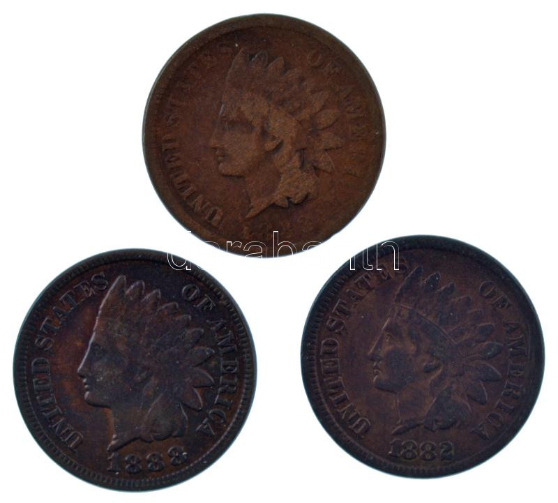 USA 1882-1888. 1 Cent bronze "Indian head" (3xdiff) C:XF,VF
