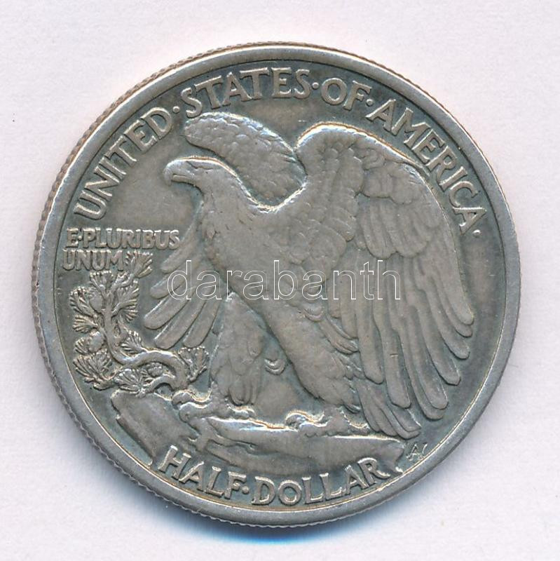 Beschreibung: Amerikai Egyesült Államok 1937. 1/2$ Ag "Walking Liberty" T:2 patina