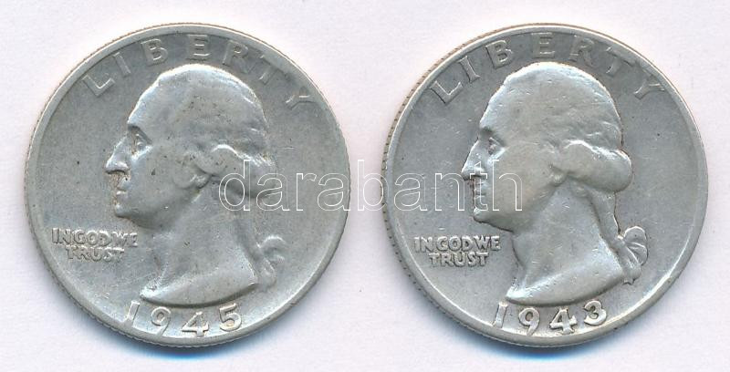 Amerikai Egyesült Államok 1943. 25c Ag + 1945S 25c Ag T:1-,2