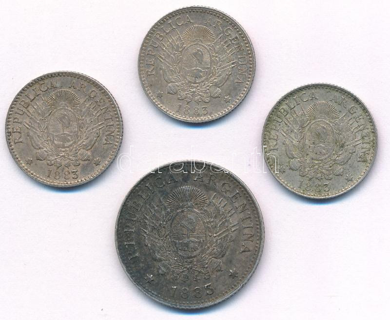 Argentina 1883. 20 C... https://www.darabanth.com/de/435-Fernauktion/435.0/Numismatik/Weltweit-Munzen~1500031/Argentina-1883-20c-Ag-plus-10c-Ag-3x-T2-patina-Argentina-1883-20-Centavos-Ag-plus-10-Centavos-Ag-~II2814361