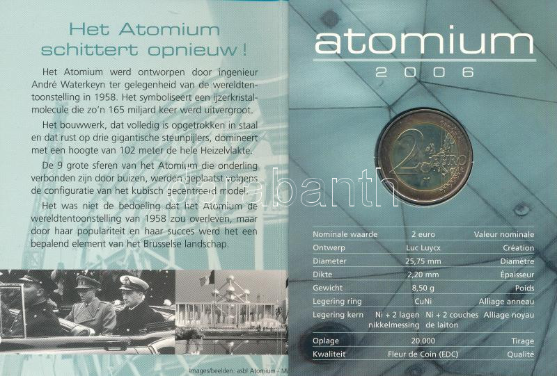 Belgium 2006. 2 Euro "Atomium" on cardboard display sheet C:UNC,AU small patina