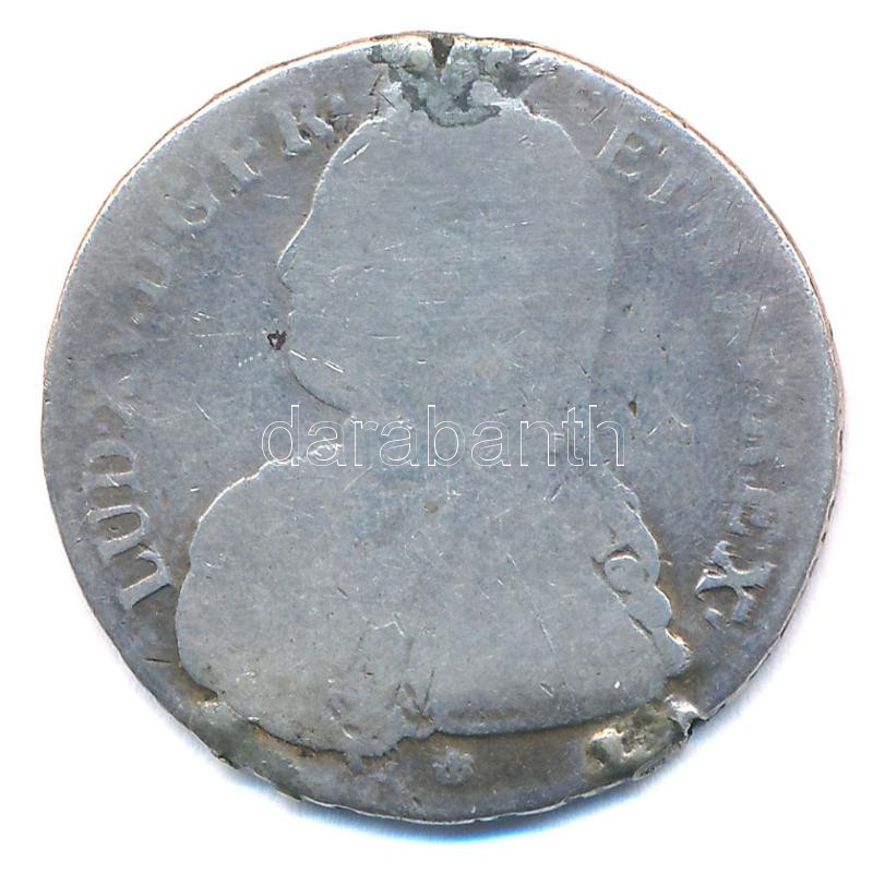 Franciaország ~1726D. 1/20E Ag "XV. Lajos" (13,75g) T:3- fülnyom France ~1726D. 1/20 Ecu Ag "Louis XV" (13,75g) C:VG ear mark Krause KM#480