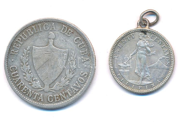 Fülöp-szigetek / Amerikai Egyesült Államok Közigazgatás 1907 20c Ag medálnak átalakítva + Kuba 1920. 40c Ag T:2-3