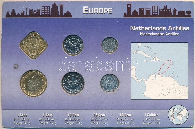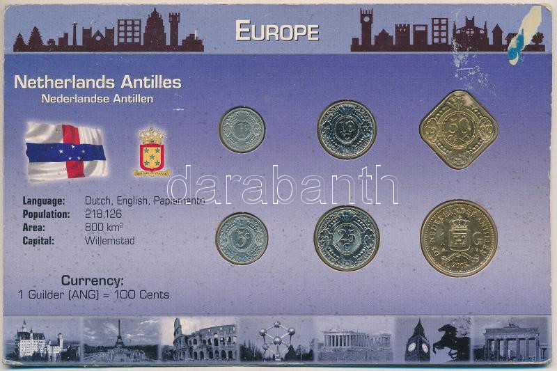 Holland Antillák 2004-2007. 1c-1G (6xklf) forgalmi összeállítás sérült... https://www.darabanth.com/de/435-Fernauktion/435.0/Numismatik/Weltweit-Munzen~1500031/Holland-Antillak-2004-2007-1c-1G-6xklf-forgalmi-osszeallitas-serult-kartonlapon-T1-1--Ne~II2818005