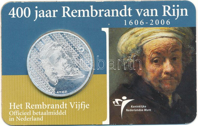 Hollandia 2006. 5E Ag "Rembrandt születésének 400. évfordulója" karton díszlapon T:1- patina Netherlands 2006. 5 Euro Ag "400th Anniversary of the birth of Rembrandt" on cardboard C:AU patina Krause KM#266