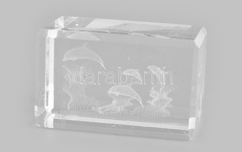 Beschreibung: 3D-s delfines üveg levélnehezék, hibátlan, m: 5 cm