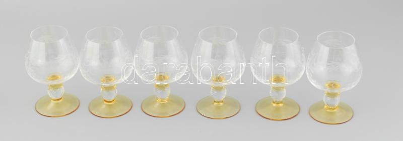 Beschreibung: 6 db talpas konyakos, csiszolt üveg pohár, kis lepattanás, m: 12,5 cm