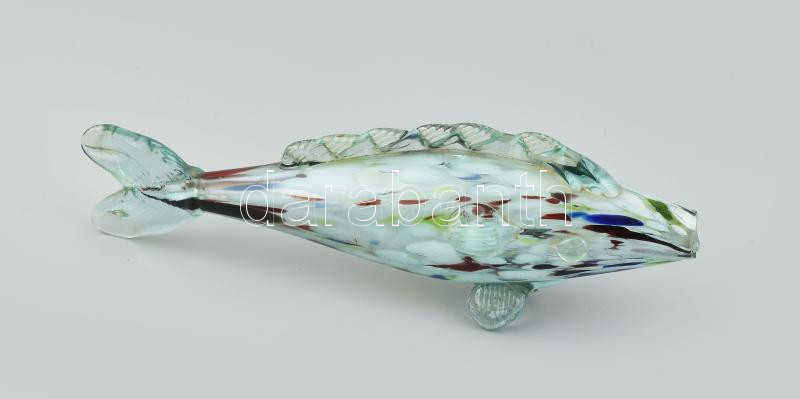Muránói üveg dísz hal, anyagában színezett, jelzés nélkül, h: 28 cm https://www.darabanth.com/de/435-Fernauktion/435.0/Porzellan-Keramik-Glass/Glaser~500007/Muranoi-uveg-disz-hal-anyagaban-szinezett-jelzes-nelkul-h-28-cm~II2820158