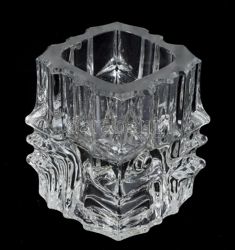 Beschreibung: Vladislav Urban retró design üveg váza, jelzés nélkül, teteje lecsiszolt, m: 8 cm