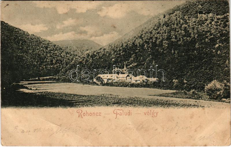 1902 Rohonc, Rechnitz; Faludi-Tal / Faludi-völgy (fa) https://www.darabanth.com/de/436-Fernauktion/436.0/Ansichtskarten/Burgenland~2000011/1902-Rohonc-Rechnitz-Faludi-Tal-Faludi-volgy-fa~II2825554