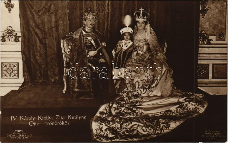 IV. Károly király és Zita királyné, Ottó a trónörökös https://www.darabanth.com/de/436-Fernauktion/436.0/Ansichtskarten/Herrscher-Politiker-Konigshauser~2000063/IV-Karoly-kiraly-es-Zita-kiralyne-Otto-a-tronorokos~II2833472