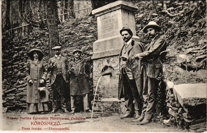 Kőrösmező, Körösmező, Jaszinya, Jasina, Yasinia (Máramaros); Magyar Turista Egyesület Máramarosi Osztálya a Tisza forrásnál. Benkő Miklós kiadása / Theissquelle / Maramures Department of the Hungarian Tourist Association at the Tisa river source