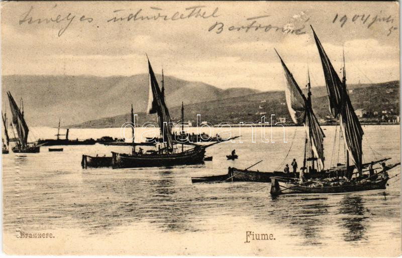 1904 Fiume, Rijeka; halászhajók. Divald Károly 455. / fishing boats https://www.darabanth.com/de/436-Fernauktion/436.0/Ansichtskarten/Kroatien~2000008/1904-Fiume-Rijeka-halaszhajok-Divald-Karoly-455-fishing-boats~II2832336