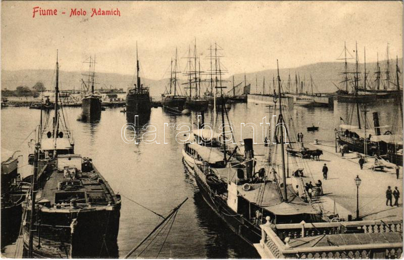 1909 Fiume, Rijeka; Molo Adamich / port, steamship https://www.darabanth.com/de/436-Fernauktion/436.0/Ansichtskarten/Kroatien~2000008/1909-Fiume-Rijeka-Molo-Adamich-port-steamship~II2824759