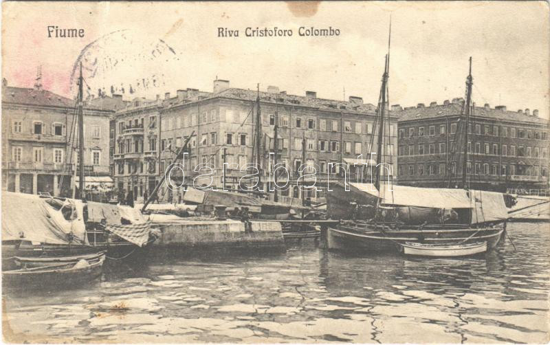 1918 Fiume, Rijeka; Riva Cristoforo Colombo / quay, ships, boats, shop... https://www.darabanth.com/de/436-Fernauktion/436.0/Ansichtskarten/Kroatien~2000008/1918-Fiume-Rijeka-Riva-Cristoforo-Colombo-quay-ships-boats-shops-fa~II2824792