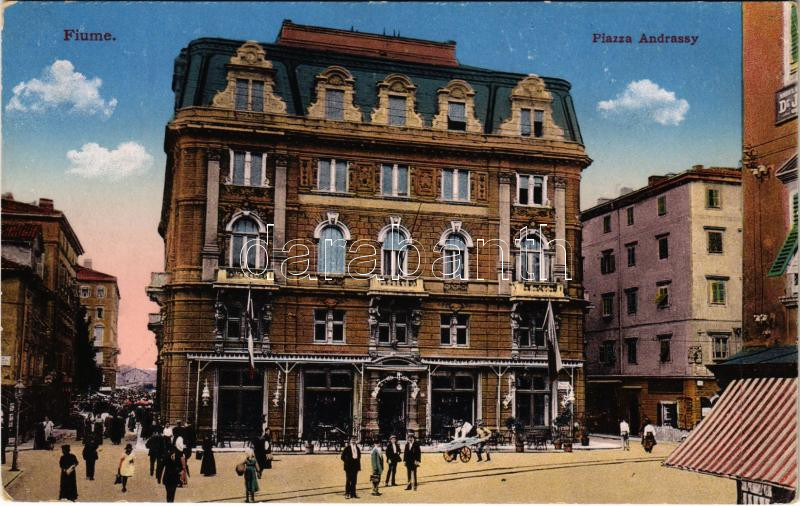 Fiume, Rijeka; Piazza Andrassy / Andrássy tér / square https://www.darabanth.com/de/436-Fernauktion/436.0/Ansichtskarten/Kroatien~2000008/Fiume-Rijeka-Piazza-Andrassy-Andrassy-ter-square~II2824764