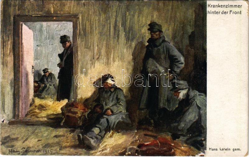 1916 Krankenzimmer hinter der Front. Offizielle Karte für Rotes Kreuz, Kriegsfürsorgeamt, Kriegshilfsbüro Nr. 401. / WWI Austro-Hungarian K.u.K. military art postcard, support fund, injured soldiers at the field hospital s: Hans Larwin (EK)