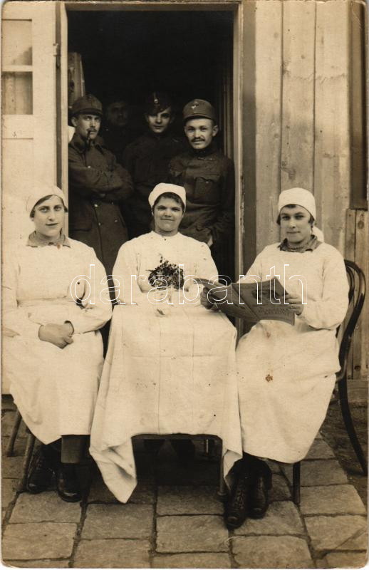 1917 Osztrák-magyar katonák és ápolónők / WWI K.u.k. Hungarian militar... https://www.darabanth.com/de/436-Fernauktion/436.0/Ansichtskarten/Militaria~2000032/1917-Osztrak-magyar-katonak-es-apolonok-WWI-Kuk-Hungarian-military-soldiers-and-nurses-~II2836140