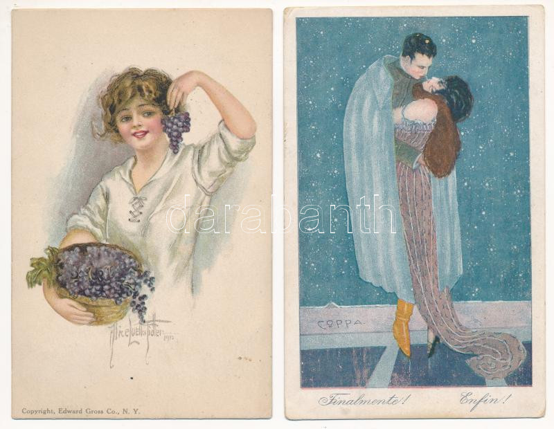Beschreibung: 12 db RÉGI művész motívum képeslap / 12 pre-1945 art motive postcards