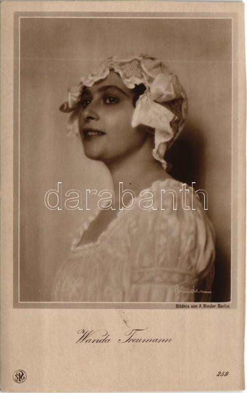 Wanda Treumann (1883-1963) német színésznő és némafilm producer. A. Bi... https://www.darabanth.com/de/436-Fernauktion/436.0/Ansichtskarten/Schauspieler-Schauspielerin~2000056/Wanda-Treumann-1883-1963-nemet-szineszno-es-nemafilm-producer-A-Binder-vagott-cut~II2833463