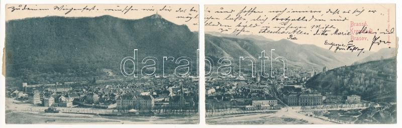 Beschreibung: 1893 (Vorläufer) Brassó, Kronstadt, Brasov; Gabony & Comp. Hajtásnál kettészakadt panorámalap / panoramacard bent til totally broken