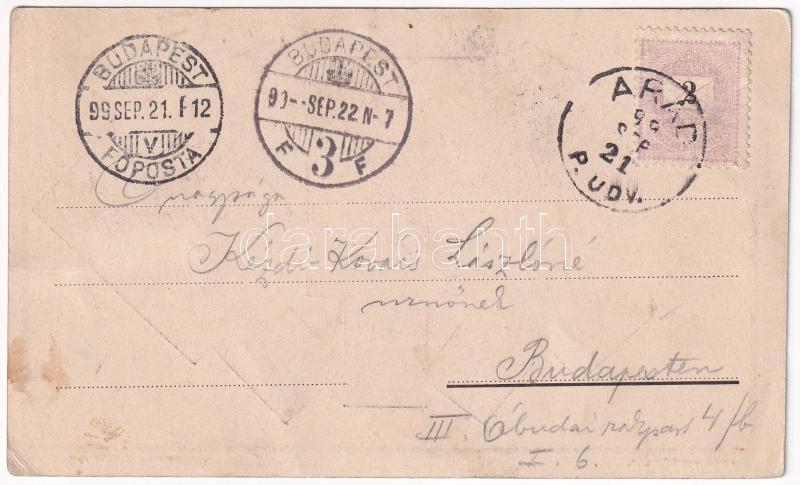 Beschreibung: 1899 (Vorläufer) Arad, 1849-1899 Október 6. Aradi Vértanúk. Muskát M. kiadása / The 13 Martyrs of Arad. Art Nouveau (EK)