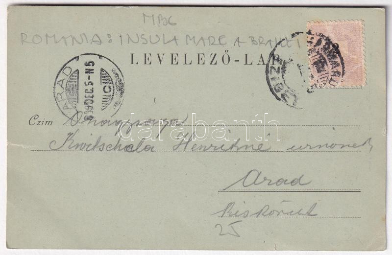 Beschreibung: 1899 (Vorläufer) Máramarossziget, Sighetu Marmatiei; Makerlói vízfogó, gát, tutajos oroszok / Macarlau dam, Russian rafters. Art Nouveau, floral (szakadások / tears)