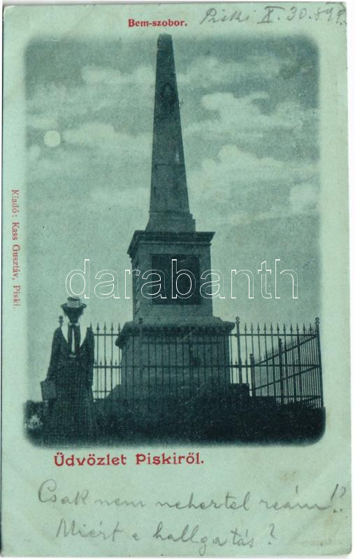 Beschreibung: 1899 (Vorläufer) Piski, Simeria; Bem szobor. Kass Gusztáv kiadása / monument of the Hungarian Revolution of 1848