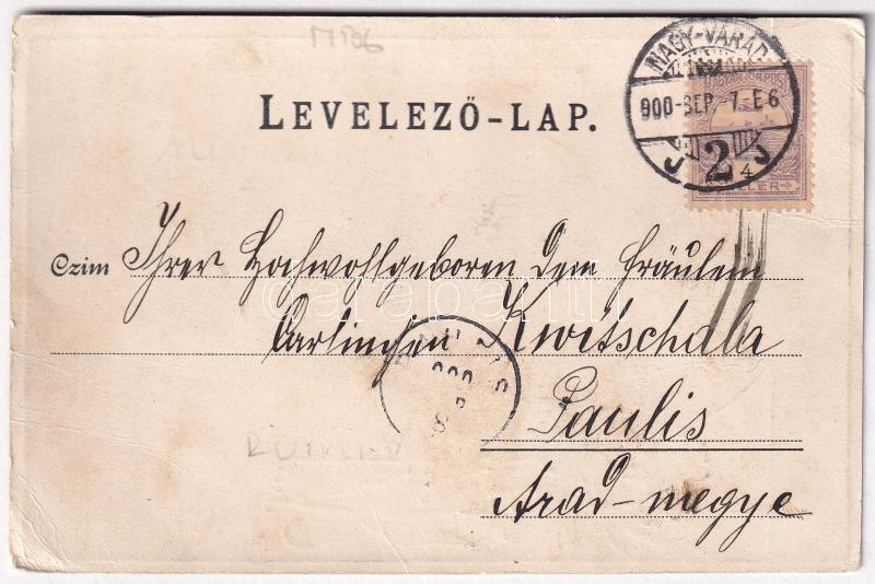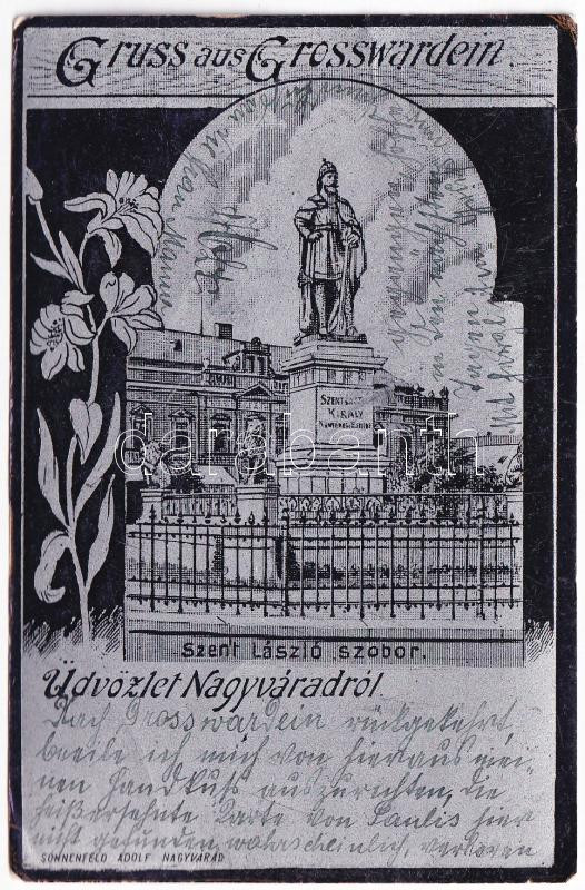 1900 Nagyvárad, Oradea; Szent László szobor. Szecessziós fémes hatású fóliás képeslap, Sonnenfeld Adolf kiadása / statue. Art Nouveau floral, metallic foil postcard (EK)