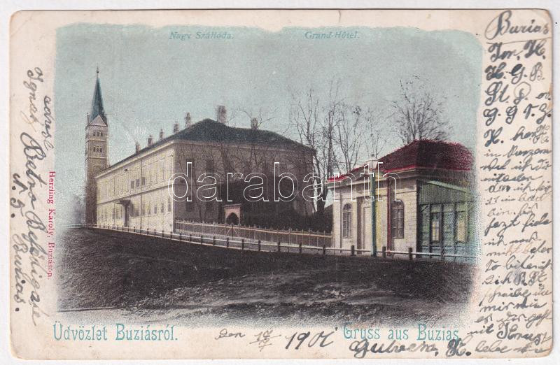 1901 Buziás, Nagy szálloda. Herrling Károly kiadása / Grand Hotel (Rb) https://www.darabanth.com/de/436-Fernauktion/436.0/Ansichtskarten/Siebenburgen~2000005/1901-Buzias-Nagy-szalloda-Herrling-Karoly-kiadasa-Grand-Hotel-Rb~II2826185